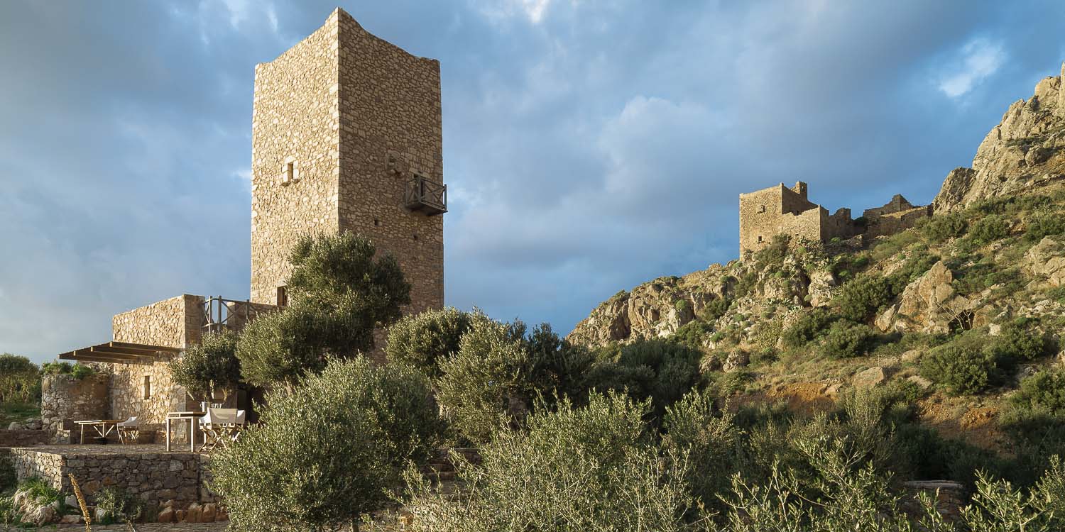 Αντιπροσωπευτικό δείγμα «ξεμονιού» του νότου, με οργάνωση παλαιού τύπου, είναι ο, διαμορφωμένος σε ξενώνα χαμηλού δυναμικού, πύργος, με τη χαρακτηριστική, αγέρωχη και δυναμική παρουσία, ο οποίος τοποθετημένος αντικριστά με ομοειδή πυργοκατασκευή, συγκροτούσε μαζί της σύστημα δύο ισχυρά οχυρωμένων συγκροτημάτων, που ήλεγχαν το πέρασμα. Ο πολεμόπυργος έχει σχεδόν τετράγωνη βάση (5.00μ x 5.50μ), θεμελιώθηκε σε στέρεο έδαφος, σε βράχους, τις «ριζωμιές» και ευρίσκεται σε στρατηγικό σημείο με εκπληκτική θέα προς τη θάλασσα και την ενδοχώρα.