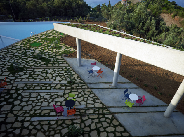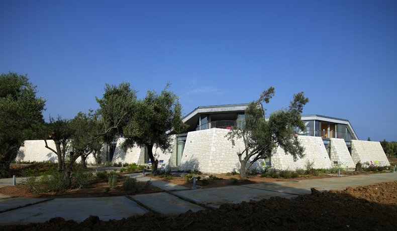 Το οικόπεδο χαρακτηρίζεται από το ήπιο ανάγλυφο, τις συστάδες με ελιές που υπάρχουν διασκορπισμένες στην επιφάνεια του και την οπτική σχέση του με την θάλασσά και τον απέναντι λόφο. Πρόθεση ήταν να μεταφερθεί η εμπειρία του τοπίου ως διαδραστικού τόπου απόλαυσης και διαμονής με την ταυτόχρονη χωρική και τυπολογική επίλυση της σχέσης ιδιωτικού και κοινοχρήστου που χαρακτηρίζει ένα ξενοδοχείο.