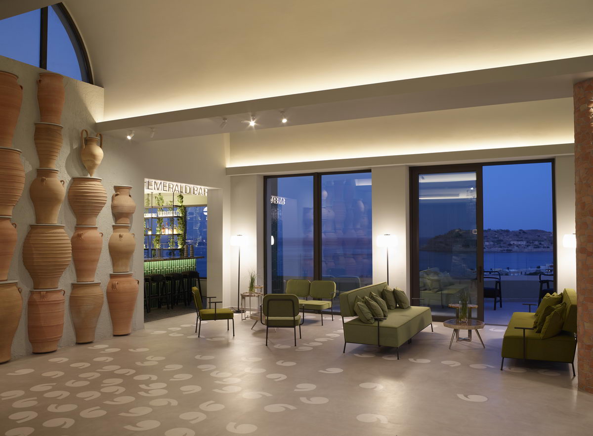 The alluring interiors were conceptualized by the famous Italian art director and designer Gian Paolo Venier. Through a unique artistic perspective, modern European cultural elements blend with Greek and Cretan traditions in innovative ways.