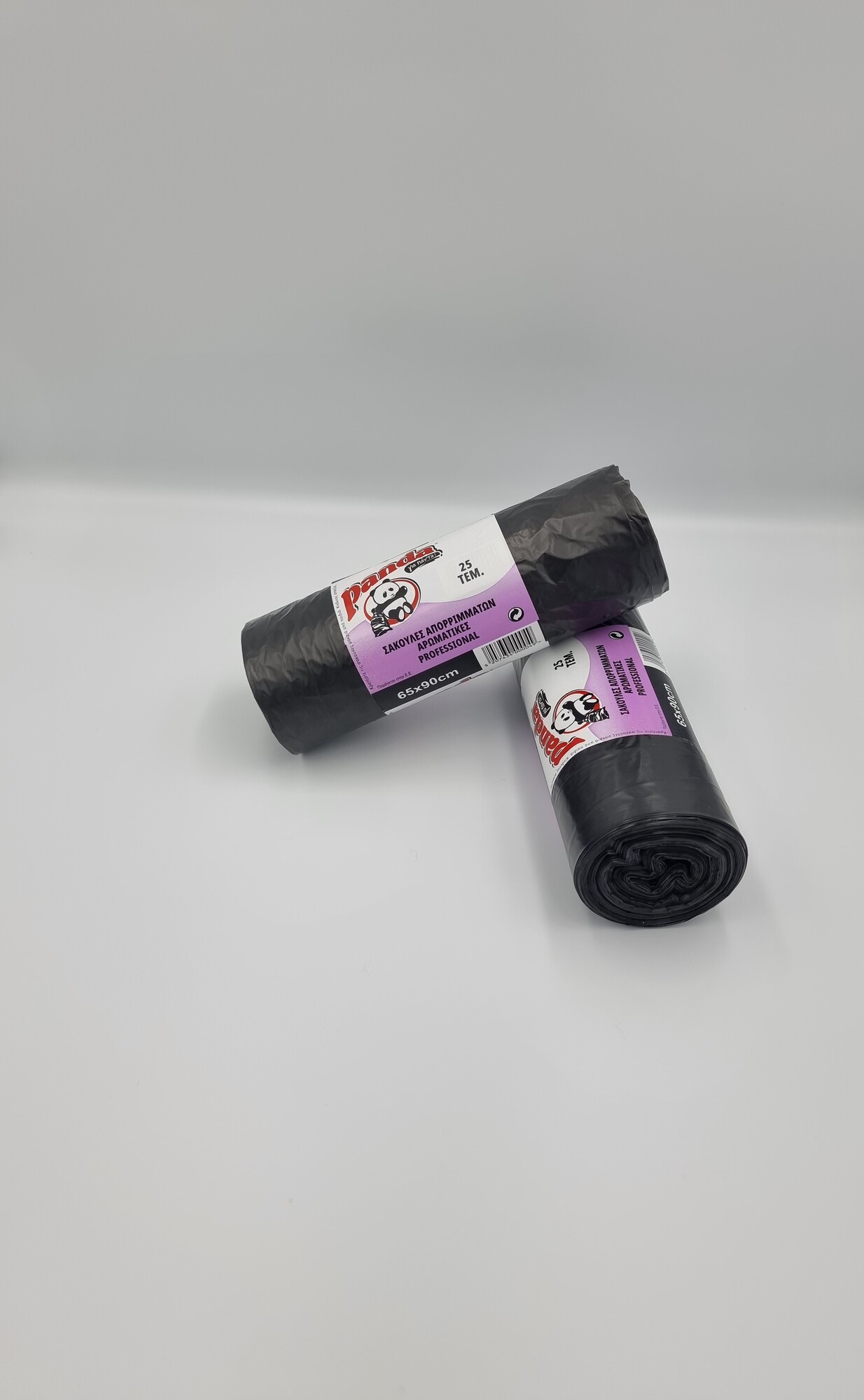 Trash bags for medium trash bins that you put outside. The dimension is 65x90 and they are slightly enchanced. They are available in black and green. They can replace the trash bags you buy per roll in the dimention 70x90.