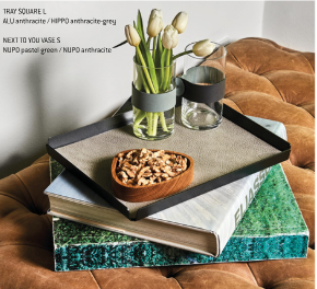 - Hospitality Items made with a variety of great quality leathers, finest regenerated reinforced leather structures for indoor and outdoor use, recycled leathers, waterproof, scratchproof.