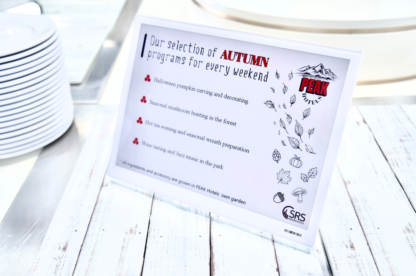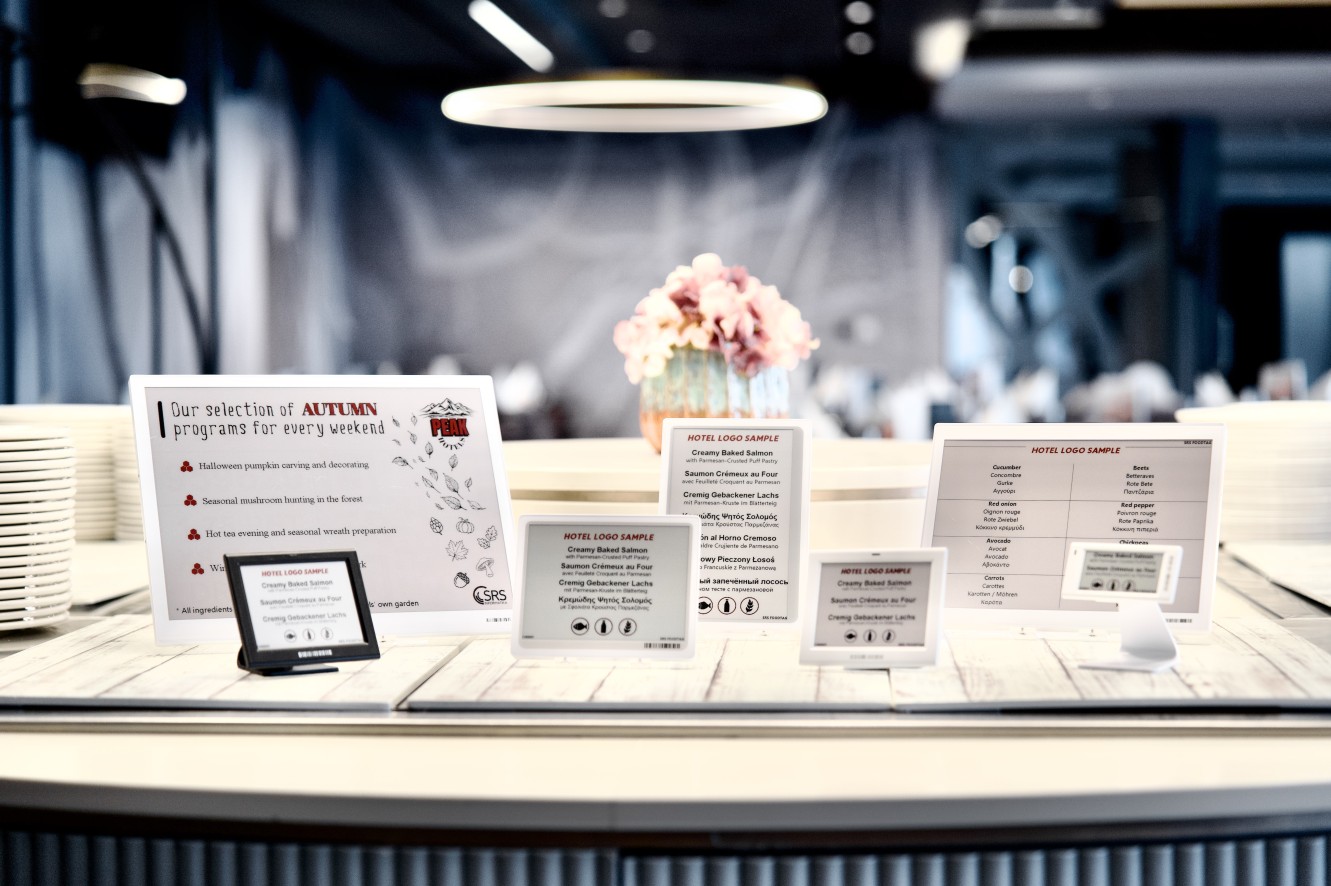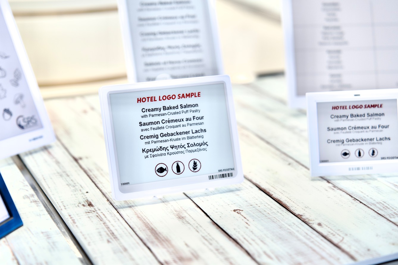 With sleek electronic food labels available in four stylish colors (black, white, red, and yellow), SRS FoodTag blends seamlessly into any environment. The labels come in six flexible display sizes—from compact 2.66” to bold 13.3” screens—perfect for everything from sauce names to full menus or wine lists.
