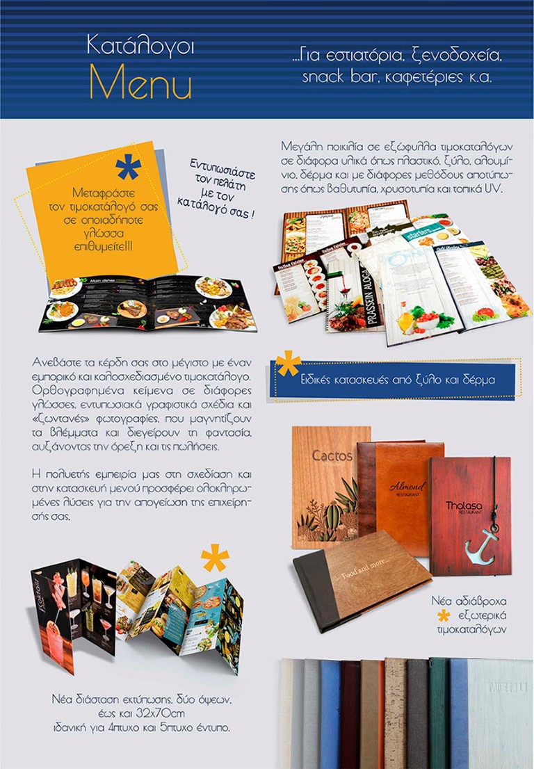 Η εταιρεία παρέχει επαγγελματικές φωτογραφικές υπηρεσίες, πρωτότυπους γραφιστικούς σχεδιασμούς για κάθε διαφημιστικό μέσο προβολής της επιχείρησής σας και υπηρεσίες εκτύπωσης σε μεγάλη γκάμα χαρτιών και υλικών.