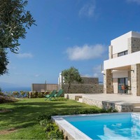 Η κάθε κατοικία διαχωρίζεται σε δύο κτιριακούς όγκους, όπου στον έναν βρίσκονται οι χώροι καθιστικού, κουζίνας και ενός μικρού υπνοδωματίου, και στον δεύτερο τα δύο κύρια υπνοδωμάτια με τα λουτρά τους. Στον χώρο μεταξύ των κτιριακών όγκων σχηματίζονται στεγασμένες βεράντες και αυλές σε διαφορετικά επίπεδα αναδεικνύοντας τη συνέχεια τού μέσα με το έξω και επεκτείνοντας την κατοικία πέρα από τα όριά της, ανοικτοί ποιοτικοί χώροι που προσφέρουν ιδιωτικότητα και αποτελούν την καρδιά τής κάθε κατοικίας. Η κάθε κατοικία επεκτείνεται και στις διαμορφώσεις γύρω από την ιδιωτική της πισίνα, από όπου ο επισκέπτης απολαμβάνει την εκπληκτική θέα προς τη θάλασσα.