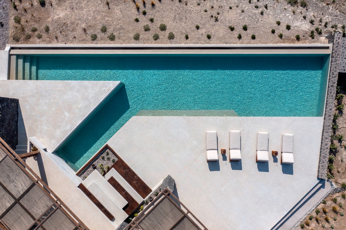 Το αποτέλεσμα μοιάζει να αναδύεται από τη Σαντορίνη, μια σύγχρονη αρχιτεκτονική σύνθεση όπου η μορφή και η χρήση συνδέονται για να δημιουργήσουν χώρους με διαχρονική γοητεία.