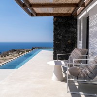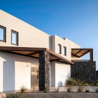 Η νέα πρόταση από τους Αρχιτέκτονες δίνει έμφαση στη σύνδεση μεταξύ γεωμετρίας και γεωλογίας, εμπνευσμένη από την ίδια τη Σαντορίνη. Στην αφηγηματική προσέγγιση του σχεδιασμού, λευκοί χώροι αναδύονται από την ηφαιστειακή κατήφεια, τη μαύρη πέτρα που πλαισιώνει το σπίτι ως μια σύγχρονη αντανάκλαση της ομορφιάς και της ιστορίας του νησιού. Η επιφάνεια του νερού στην πισίνα συνδέει οπτικά τον χώρο με το φυσικό του περιβάλλον.