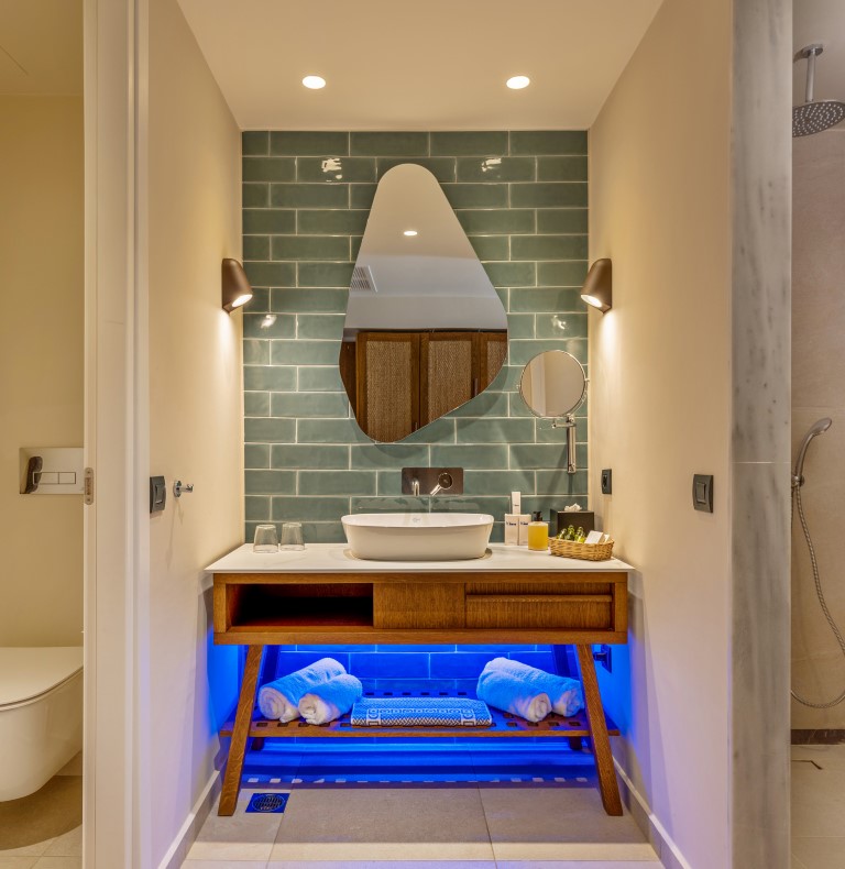 Στο κέντρο σχεδιάστηκε πλατεία με ανεμπόδιστη πρόσβαση για ΑμεΑ αλλά και κατεύθυνση προς όλα τα σημεία του ξενοδοχείου.