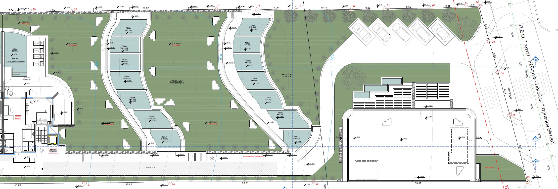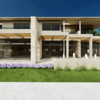 Σχεδιάστηκε ένα ξενοδοχείο 44 δωματίων και σουιτών με ατομικές πισίνες 15,00-19,00 τμ. Το κτίριο έχει μεγάλη διάσπαση όγκων και αναπτύσσεται σε πέντε κτίρια ισόγεια και διώροφα. Είναι εν μέρει υπόσκαφα με φυτεμένα δώματα. Καμπύλες τριγωνικές οπές στην οροφή των στεγάστρων αφήνουν το φυσικό φως να φωτίζει τις βορινές βεράντες, ενώ φυτά πέφτουν από τα φυτεμένα δώματα. Πάνω από την τρίτη στάθμη σε φυτεμένο δώμα, διαμορφώνεται ειδική ελαφριά κατασκευή από διάτρητα φύλλα αλουμινίου, εμβαδού 110,00 τμ, πέργκολα για ασκήσεις γιόγκα και άλλα προγράμματα. Έχει θαυμάσια θέα στα φυτεμένα δώματα και στο βάθος τη θάλασσα.
