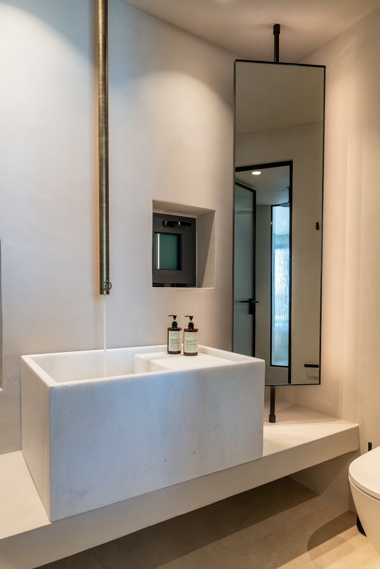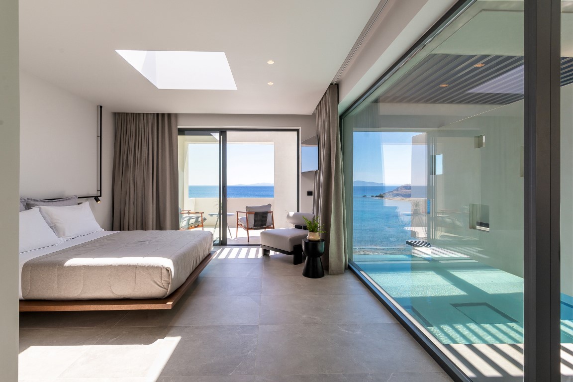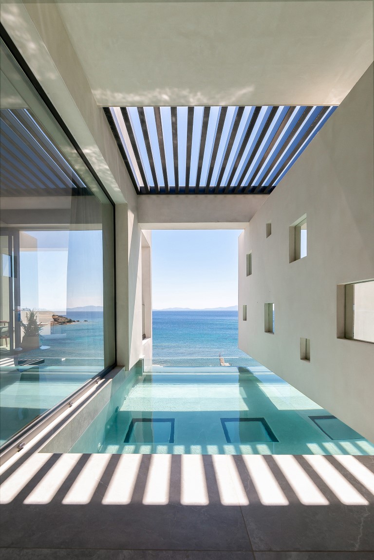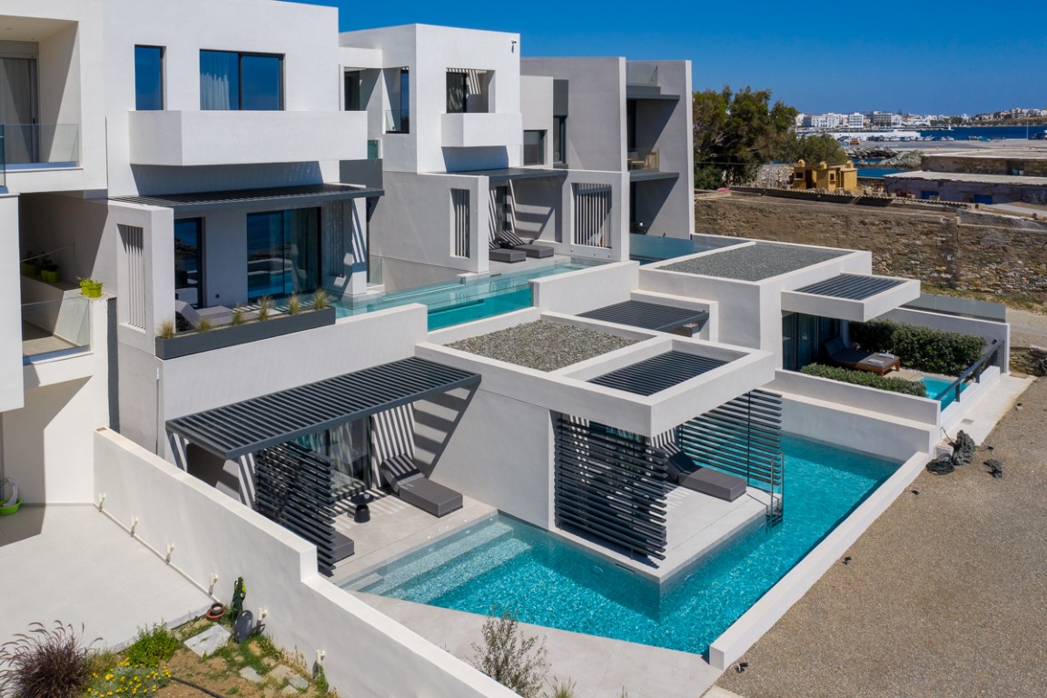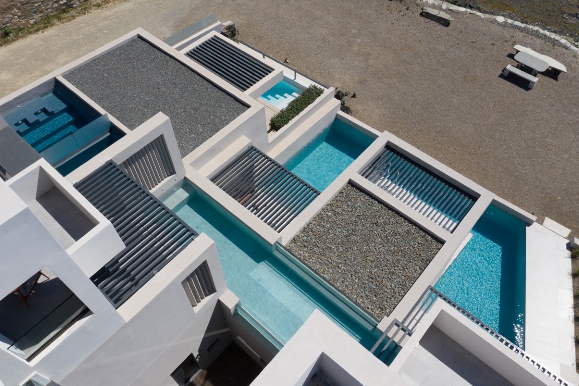 Το Orion Suites είναι ένα τριώροφο κτίριο με έντεκα πολυτελείς σουίτες στην ακτογραμμή της Τήνου, με ανεμπόδιστη θέα στο Αιγαίο, που εστιάζει στην εμπειρία του επισκέπτη μέσα από διακριτική πολυτέλεια, μινιμαλιστικό σχεδιασμό, με έμφαση στη λεπτομέρεια. Μέσα από αρχιτεκτονικές επιλογές όπως είναι η χαμηλή τοποθέτηση του πρώτου επιπέδου, η διάσπαση των όγκων, τα ασύμμετρα διάτρητα πανέλα και τα πράσινα δώματα, επιτυγχάνεται διακριτική ένταξη στο περιβάλλον. Οι ιδιωτικές μικρές πισίνες, ο μινιμαλιστικός σχεδιασμός και η φυσική συνέχεια μεταξύ εσωτερικού και εξωτερικού χώρου εξασφαλίζουν άνεση και ηρεμία. Ο φωτισμός και τα υλικά υπογραμμίζουν τον σύγχρονο, αστικό χαρακτήρα, δημιουργώντας μια ζεστή, πολυτελή εμπειρία φιλοξενίας.