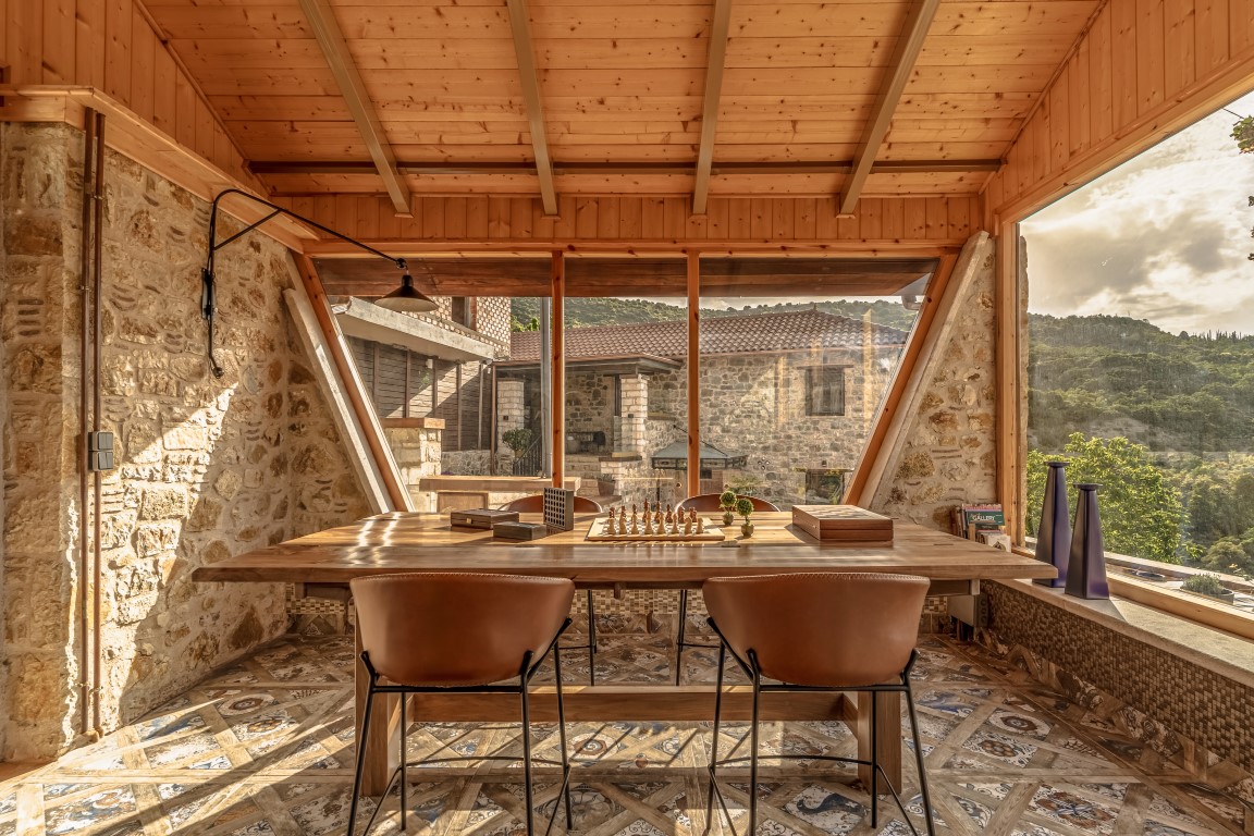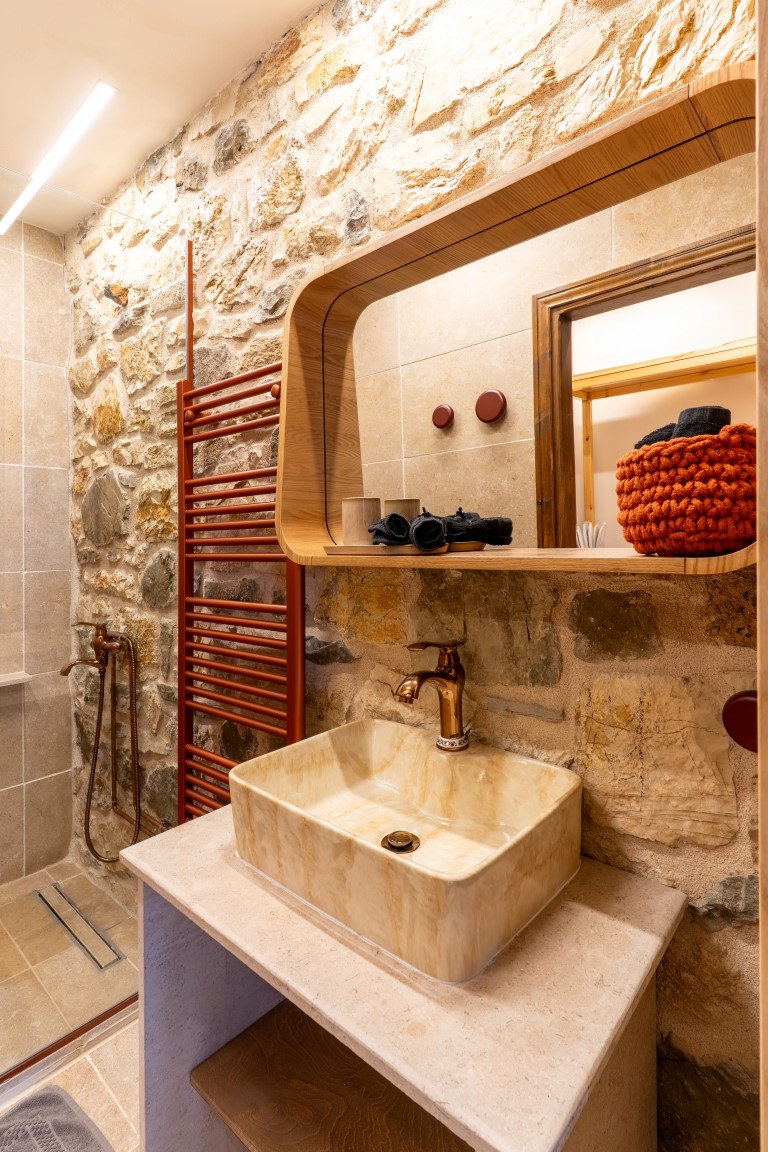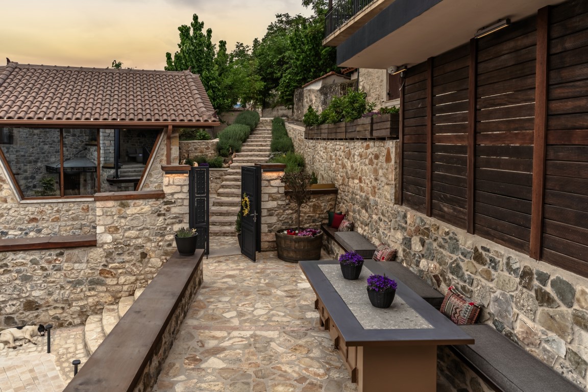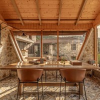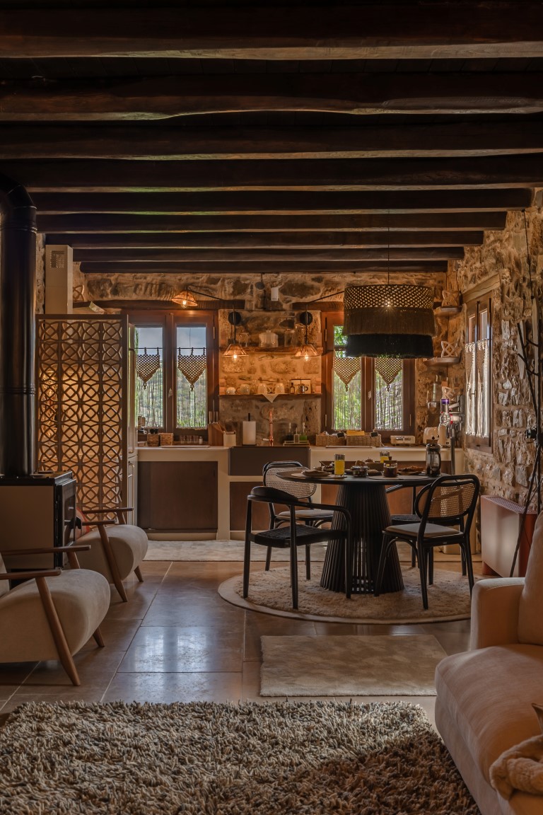 Στον Άη-Γιάννη, ένας παλιός στάβλος με μια αγροτική κατοικία από πάνω του μεταμορφώνεται σε λιτή, γεωμετρική σύνθεση κατοικιών, που φωλιάζει διακριτικά στο πέτρινο τοπίο. Τοπικά υλικά συναντούν σύγχρονες υφές, σμιλεύοντας ένα εκλεπτυσμένο αρχιτεκτονικό ιδίωμα. Οι χώροι διατηρούν την αυτονομία τους, επικοινωνώντας μέσα από αυλές, πέτρινα σκαλιά και υπαίθρια περάσματα, μια εμπειρία ιδιωτικότητας με αίσθηση γειτονιάς. Τα ανοίγματα προκύπτουν ως σχισμές, εσοχές και αφαιρέσεις όγκου, φως και σκιά εναλλάσσονται, αγγίζοντας την τραχιά πέτρα και τις ξύλινες επιφάνειες με λεπτότητα. Το κτίσμα αφουγκράζεται τη μνήμη και δηλώνει την πρόθεση μιας σιωπηλής συνέχειας.