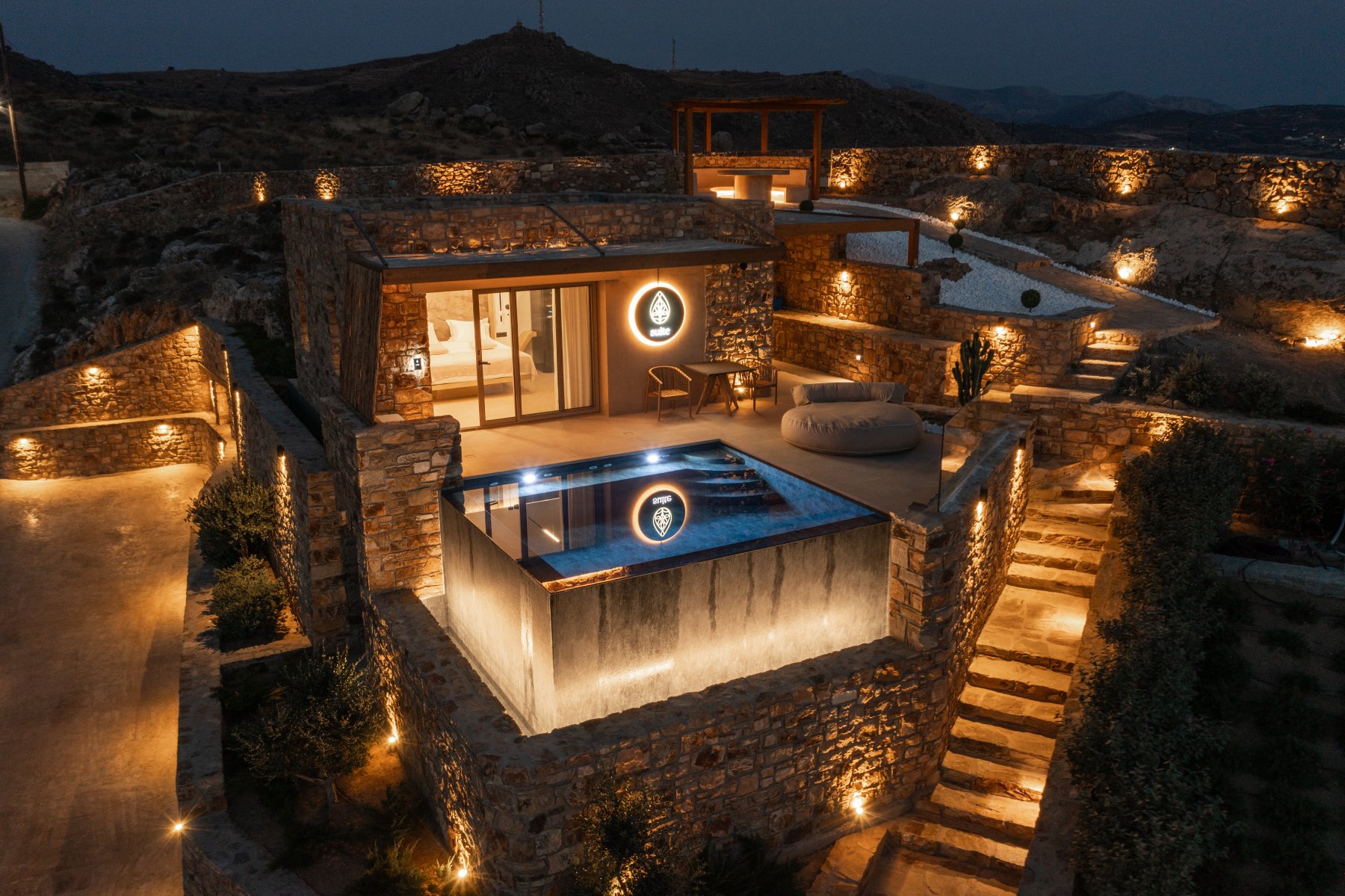 Μια εμβληματική επένδυση κόσμημα για το νησί της Νάξου, που αποπνέει μοναδική αισθητική και πολυτέλεια. Απόλυτα ενσωματωμένη στη φύση, χωρίς να αλλάζει τη μορφολογία του βουνού, με μεσογειακή φύτευση και δεξιοτεχνικά κτισμένη με φυσική πέτρα. Η θέα είναι εντυπωσιακή και το ηλιοβασίλεμα αξέχαστο. Το έργο περιλαμβάνει 3 υπόσκαφες βίλες με 2 υπνοδωμάτια, 2 μεγάλα μπάνια και ένα μεγάλο σαλόνι με κουζίνα νησίδα, όλα προσανατολισμένα στην υπέροχη θέα. Επίσης υπάρχει μια σουίτα για ζευγάρια στην κορυφή του έργου, με ένα υπεροπτικό και luxurious φινίρισμα στο όλο project.