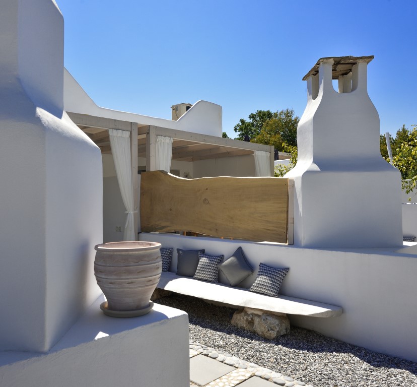 Φυσικά υλικά, γήινες αποχρώσεις και υφές δημιουργούν μία αρμονική σύνδεση με τη φύση. Ο χώρος μεταμορφώνεται κάθε εποχή του χρόνου με την ίδια δόση ομορφιάς, που γαληνεύει την ψυχή με έναν τρόπο μοναδικό.