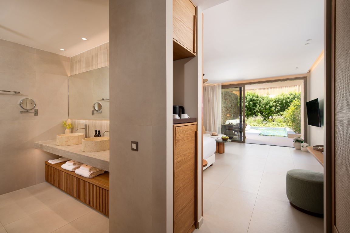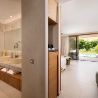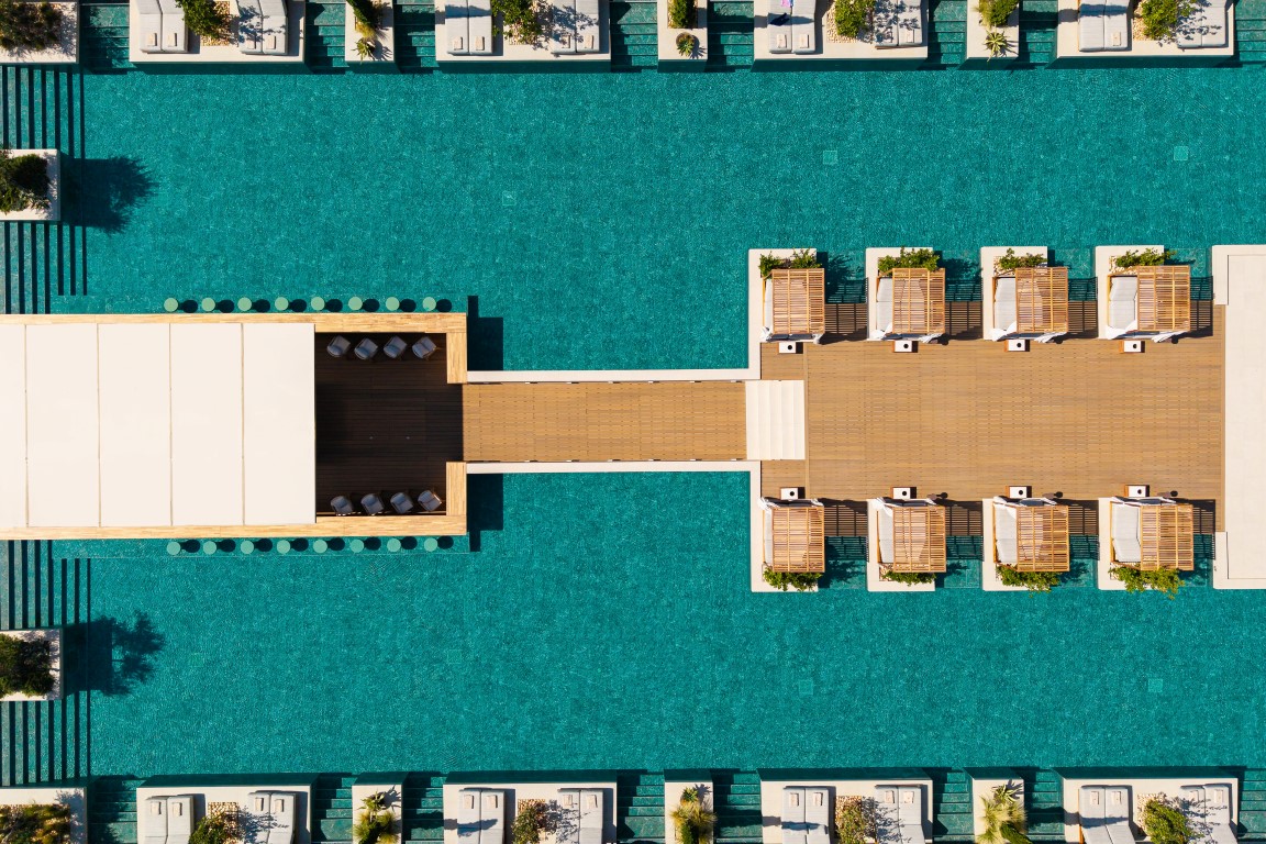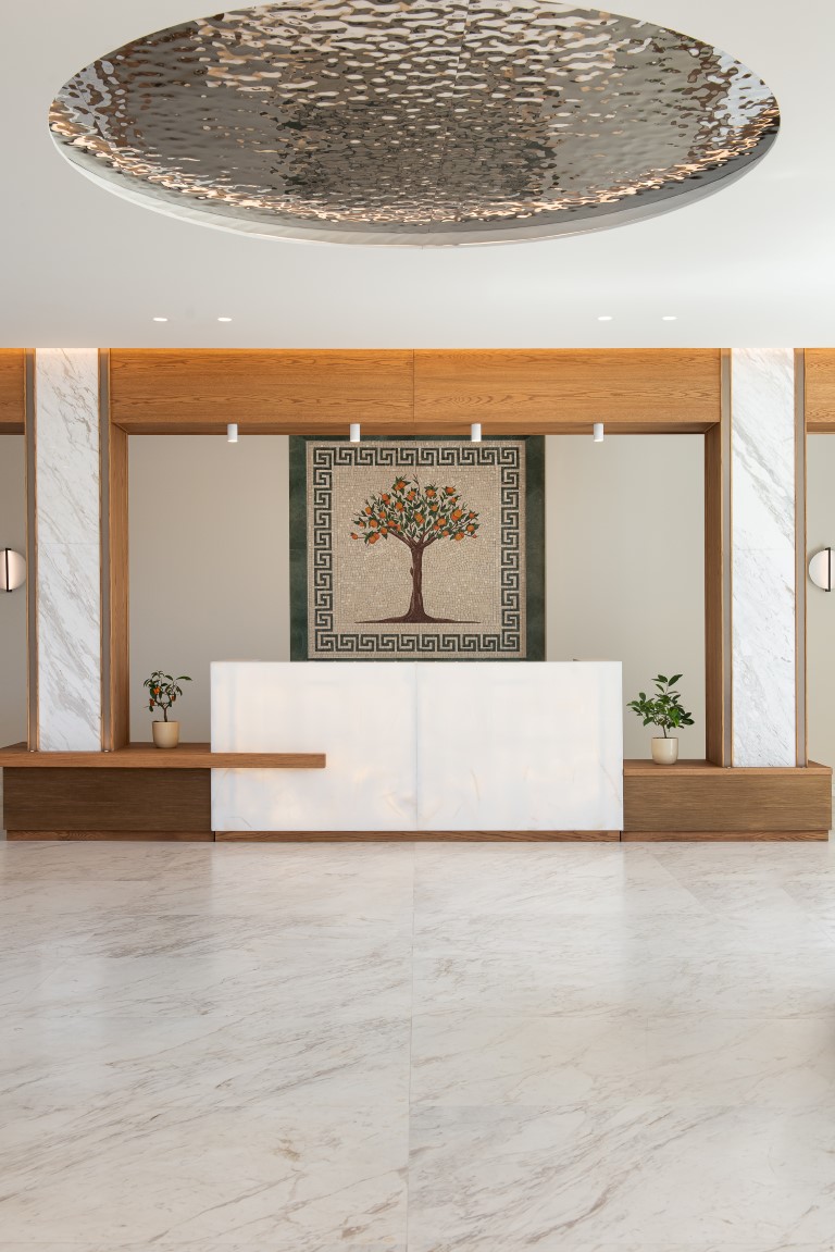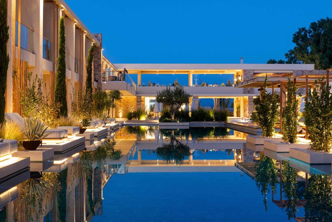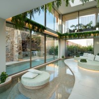 Στη Χίο, ένα ξενοδοχειακό συγκρότημα συνδυάζει την ευεξία με την τοπική αρχιτεκτονική παράδοση, αξιοποιώντας αυθεντικά στοιχεία ως βασική σχεδιαστική αρχή. Δημιουργεί χώρους ηρεμίας και κοινωνικής αλληλεπίδρασης, με ισορροπία ανάμεσα στην ιδιωτικότητα και την άμεση επαφή με το φυσικό περιβάλλον. Η φωτεινή κεντρική αυλή, εμπνευσμένη από τα αρχοντικά του νησιού, λειτουργεί ως ανοιχτός πυρήνας ζωής και φιλοξενίας. Γύρω από την πισίνα οργανώνονται τα δωμάτια, με άμεση πρόσβαση σε αυτήν, ενώ το spa, με κυρίαρχο στοιχείο το νερό και τη διακριτική χρήση φυσικών υλικών, αποδίδει μια ατμόσφαιρα χαλάρωσης που αναδεικνύει τη μοναδικότητα του τοπίου και το ήπιο κλίμα του νησιού.
