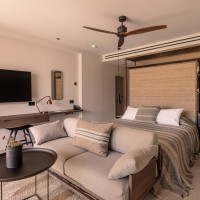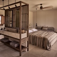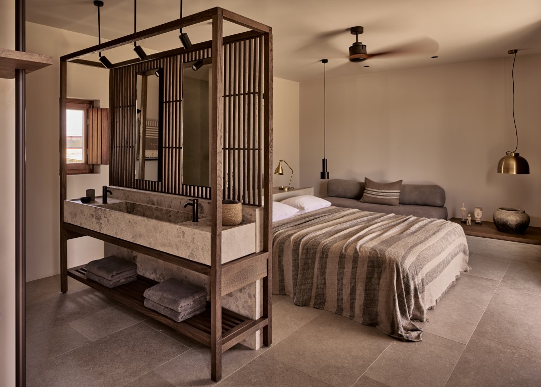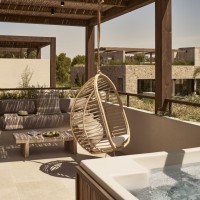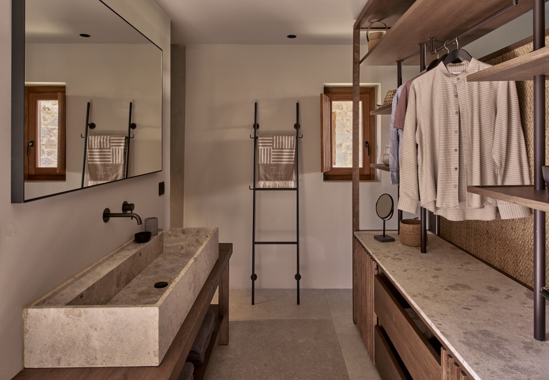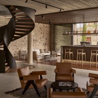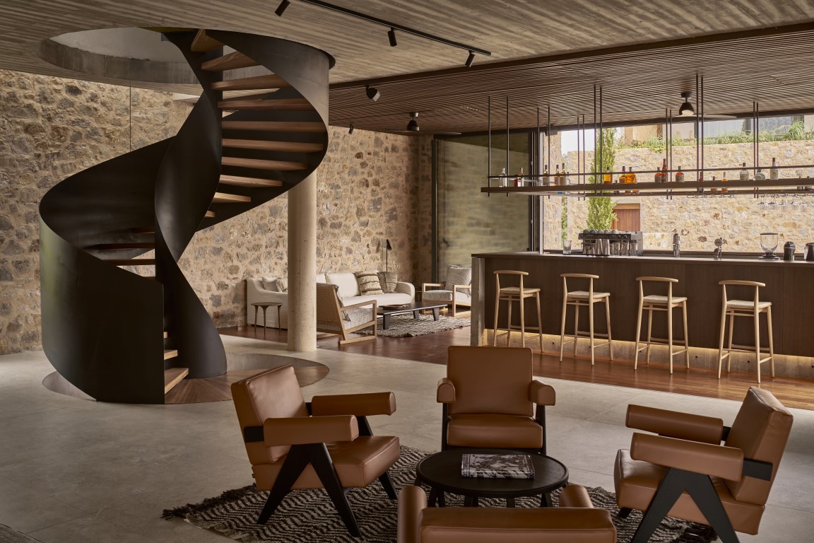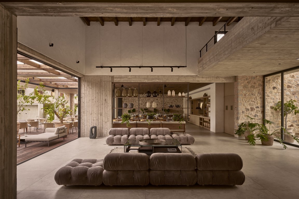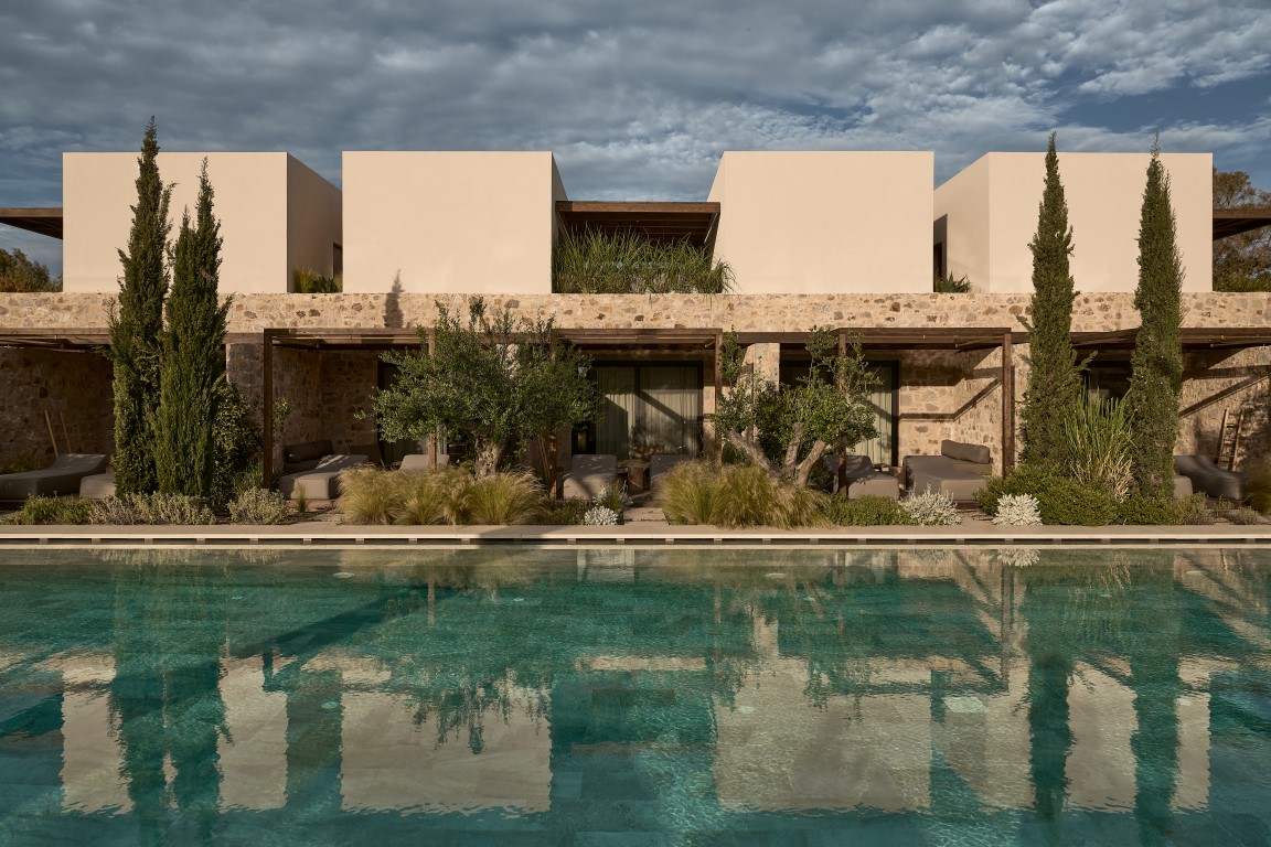 Η αρχιτεκτονική σύνθεση βασίζεται σε κοινή γλώσσα με το αδελφό συγκρότημα, με αναφορά στην παραδοσιακή δομή του ελληνικού χωριού. Ο όγκος και η υλικότητα χαρακτηρίζονται από κυβικά κτίρια επενδεδυμένα με τοπική πέτρα, αδρό ξύλο και ελληνικό μάρμαρο, στοιχεία που εδραιώνουν το έργο στο φυσικό τοπίο.