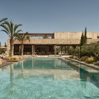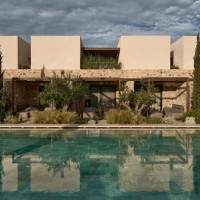 Η χωροθέτηση των κτιρίων γίνεται στην εσωτερική πλευρά του οικοπέδου, ώστε να δημιουργηθεί προστατευμένος πυρήνας με κεντρική πισίνα, αποτρέποντας την οπτική επαφή με τον περιβάλλοντα οικισμό.