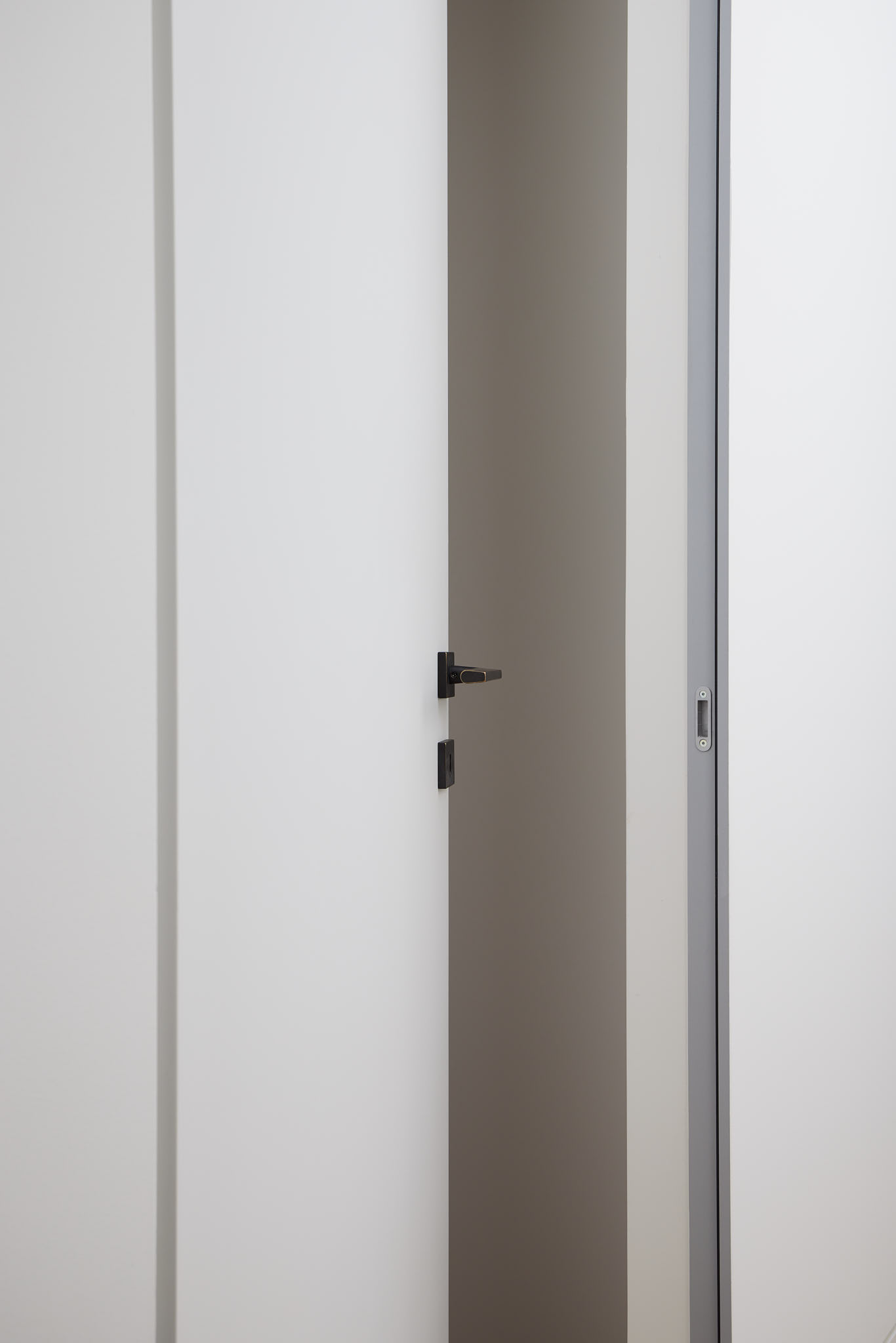 Μοντέρνα σχεδίαση που αναδεικνύει την καθαρότητα και την απλότητα των γραμμών, με θυρόφυλλο αναρτημένο σε κρυφούς μεντεσέδες. Το σύστημα προσφέρει απλότητα και ομοεπιπεδότητα με τις διπλανές επιφάνειες, επιτρέποντας ταυτόχρονα την ενσωμάτωσή του στην τοιχοποιία, είτε με το χρώμα είτε με την εφαρμογή ταπετσαρίας ή άλλες τεχνοτροπίες βαφής.