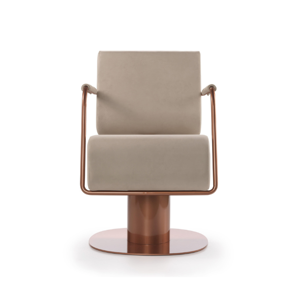 Ο μοναδικός σχεδιασμός του πλούσιου καθίσματος συνδυάζεται μοναδικά με τη βάση και τον σκελετό στο χρώμα του χαλκού. Έχετε τη δυνατότητα να επιλέξετε το χρώμα δερματίνης που σας αρέσει καλύτερα ανάμεσα σε μεγάλη ποικιλία χρωμάτων.