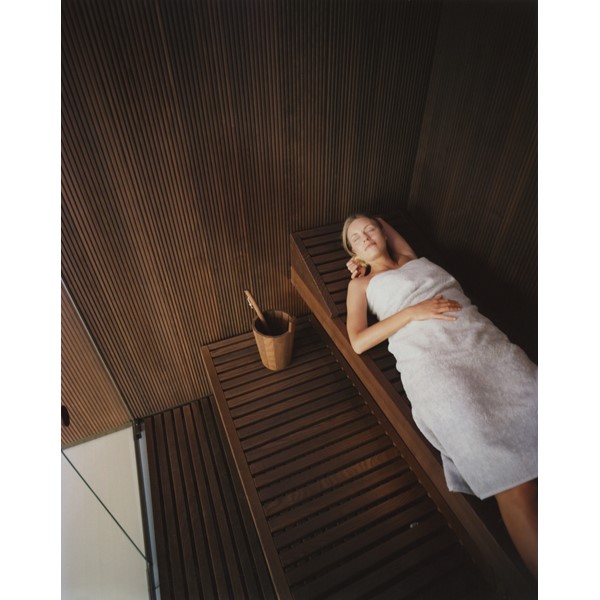 Σάουνα από ξύλο φινίρισμα διαθέσιμη σε καναδική Hemlock και θερμικά επεξεργασμένο σκληρό ξύλο, διαθέσιμο επίσης με τις επιφάνειες στον καθρέφτη κατόπιν ζήτησης