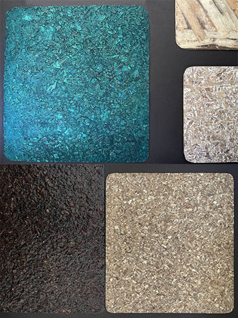 Μπορούν να χρησιμοποιηθούν ως καπλαμάς για διάφορες εφαρμογές όπως σε έπιπλα, πόρτες κλπ. και οι νέες εύκαμπτες οικολογικές επιφάνειες σε τοίχους ως ταπετσαρίες. Οι επιφάνειες/πάνελ χαρακτηρίζονται από τη φυσικότητα, την αυθεντικότητά τους και μπορούν να προσαρμοστούν και να διαμορφωθούν σε υφή και χρώμα ανάλογα με τα πρότζεκτ